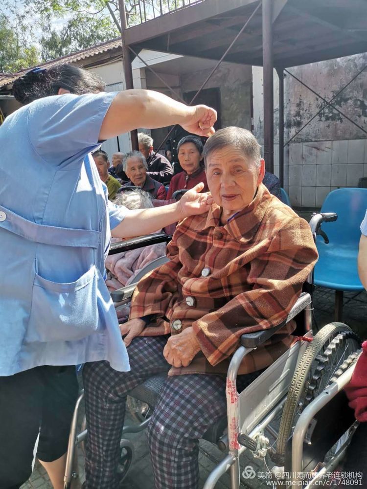 為老媽媽梳梳頭。