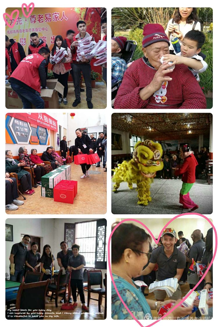 “愛(ài)出者愛(ài)返,福往者福來(lái)”。壽而康養老連鎖機構“行善積德,大愛(ài)無(wú)疆,上善若水,崇壽而康”的企業(yè)精神,吸引、匯聚了多個(gè)街道社區、愛(ài)心企業(yè)、院校志愿者愛(ài)心團隊,形成“愛(ài)”的互動(dòng)。他們定期或不定期來(lái)到機構各養老院、社區養老服務(wù)中心,為住養老人提供愛(ài)心關(guān)懷和服務(wù)。
