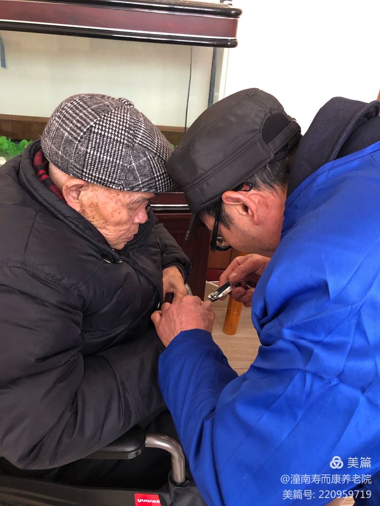 近視眼扈老師戴上眼鏡仔細“偵查”護理死角,發(fā)現陳爺爺手指甲需要修剪了,馬上安排!