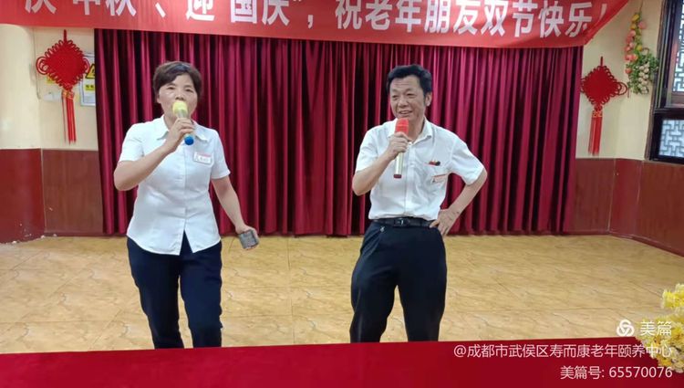 壽而康養老服務(wù)有限公司董事會(huì )董事長(cháng)特別安排下屬各機構為老人們熱烈慶?!皯c中秋、迎國慶”活動(dòng),壽而康武侯金花院于9月19日下午3點(diǎn)活動(dòng)正式開(kāi)始。老人、員工放聲歌唱,載歌載舞齊歡笑,歡聚一堂共同慶?!皯c中秋、迎國慶”。祝福祝祖國繁榮昌盛,祝國萬(wàn)歲!
