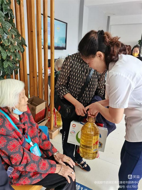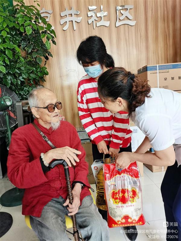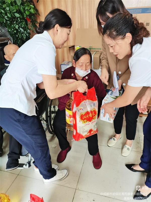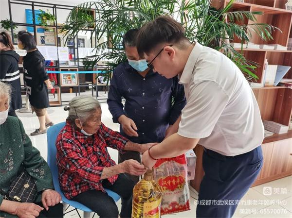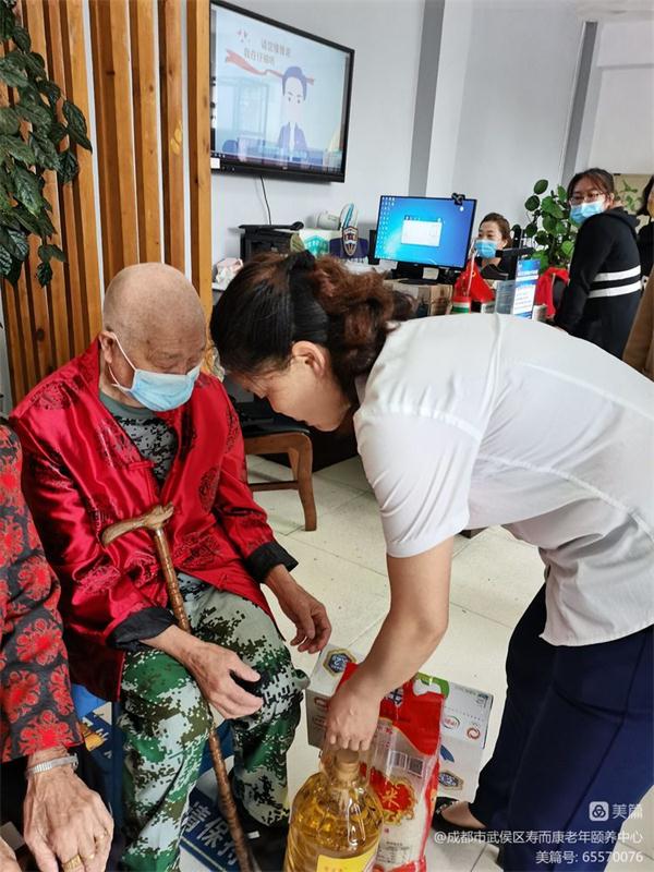 公司運營(yíng)管理一部總監助理徐翔、經(jīng)理饒莉,武侯區壽而康老年頤養中 心楊小婭院長(cháng)為老人們送上禮品,祝愿他(她)們:身體健康,事事順心!